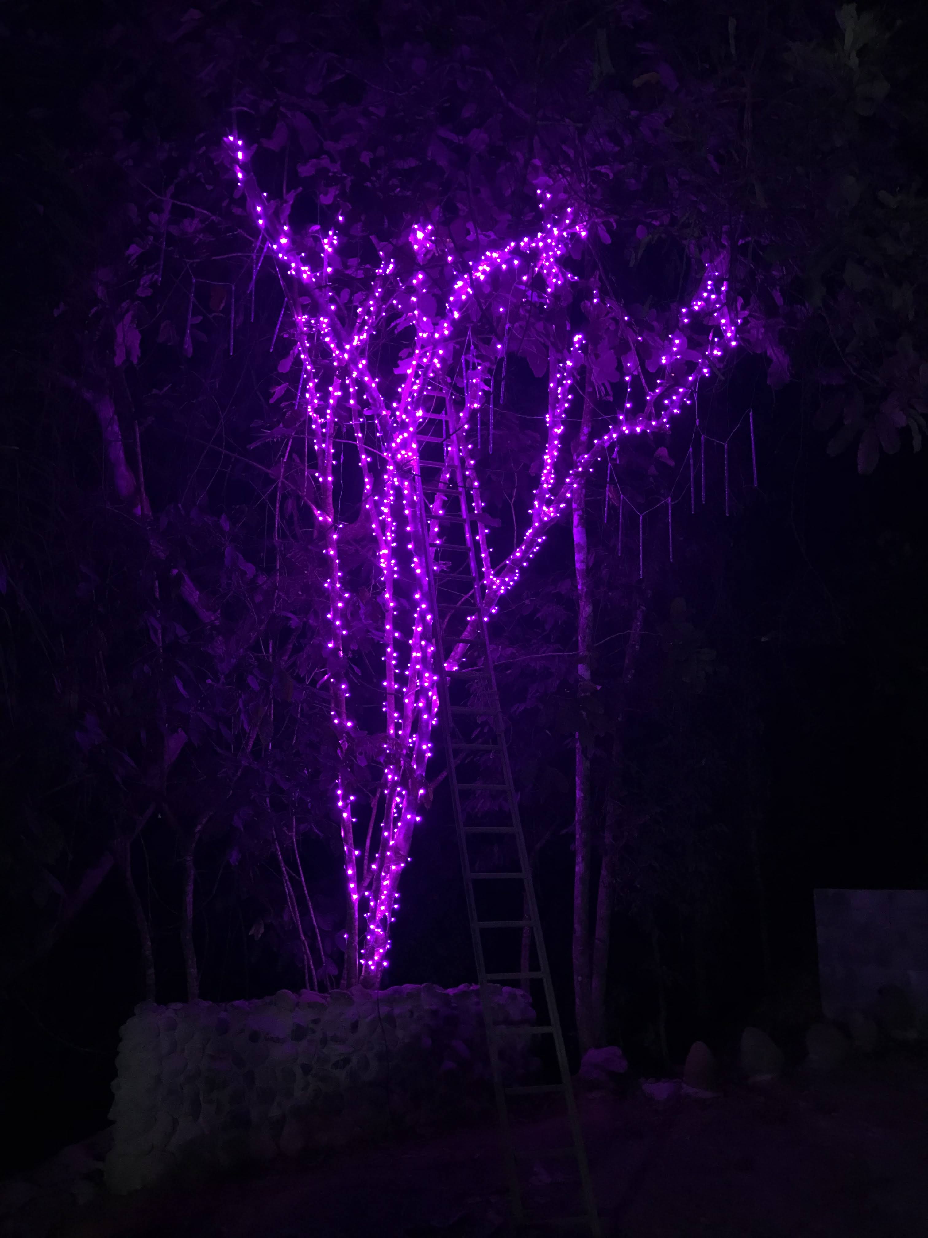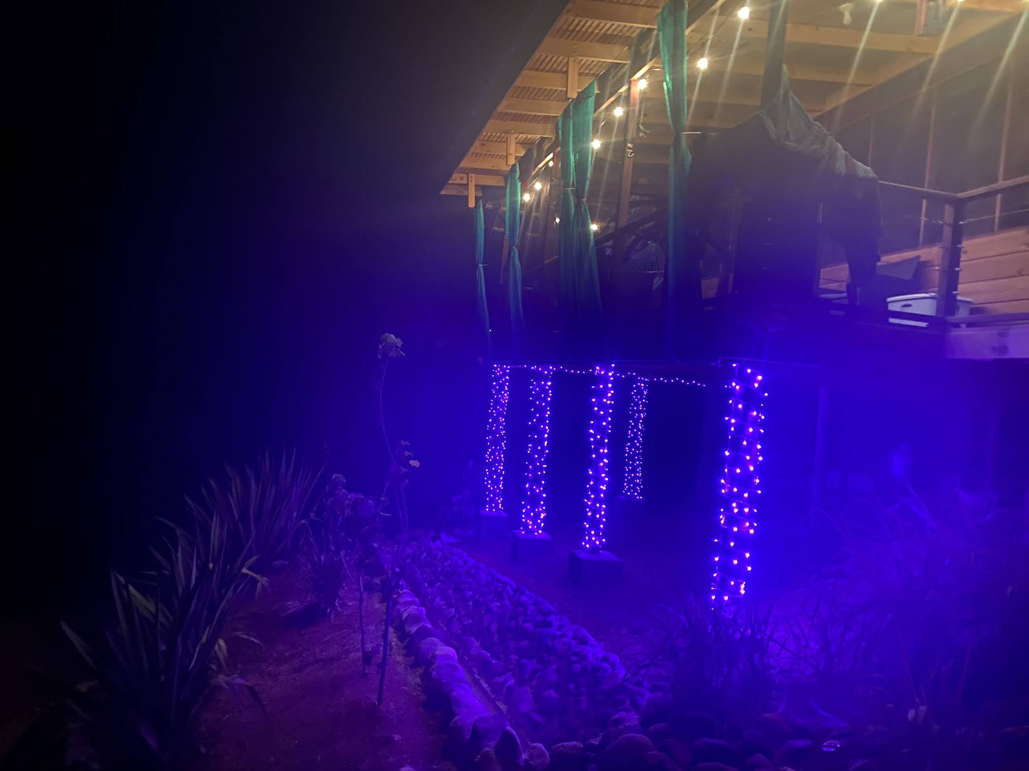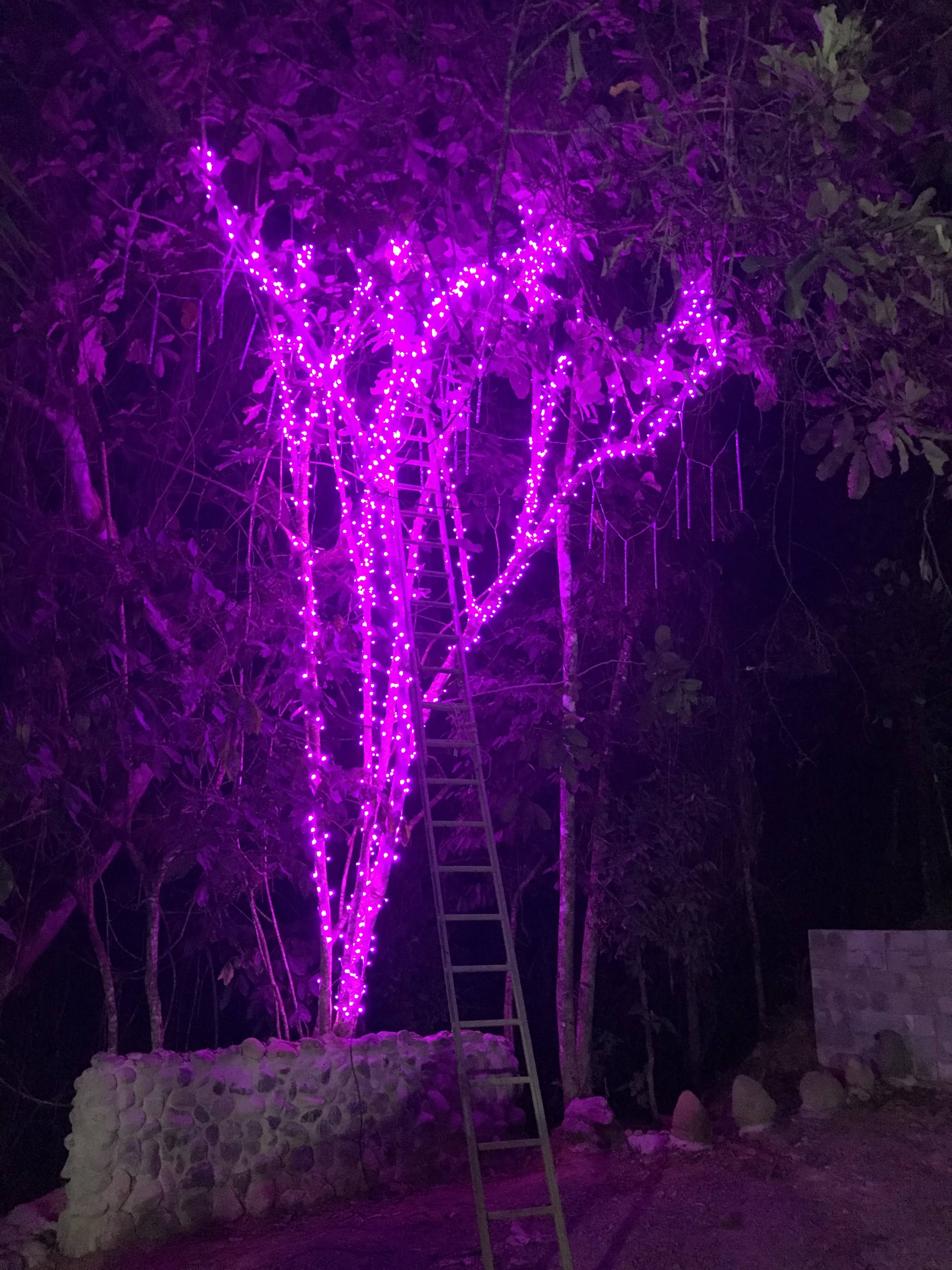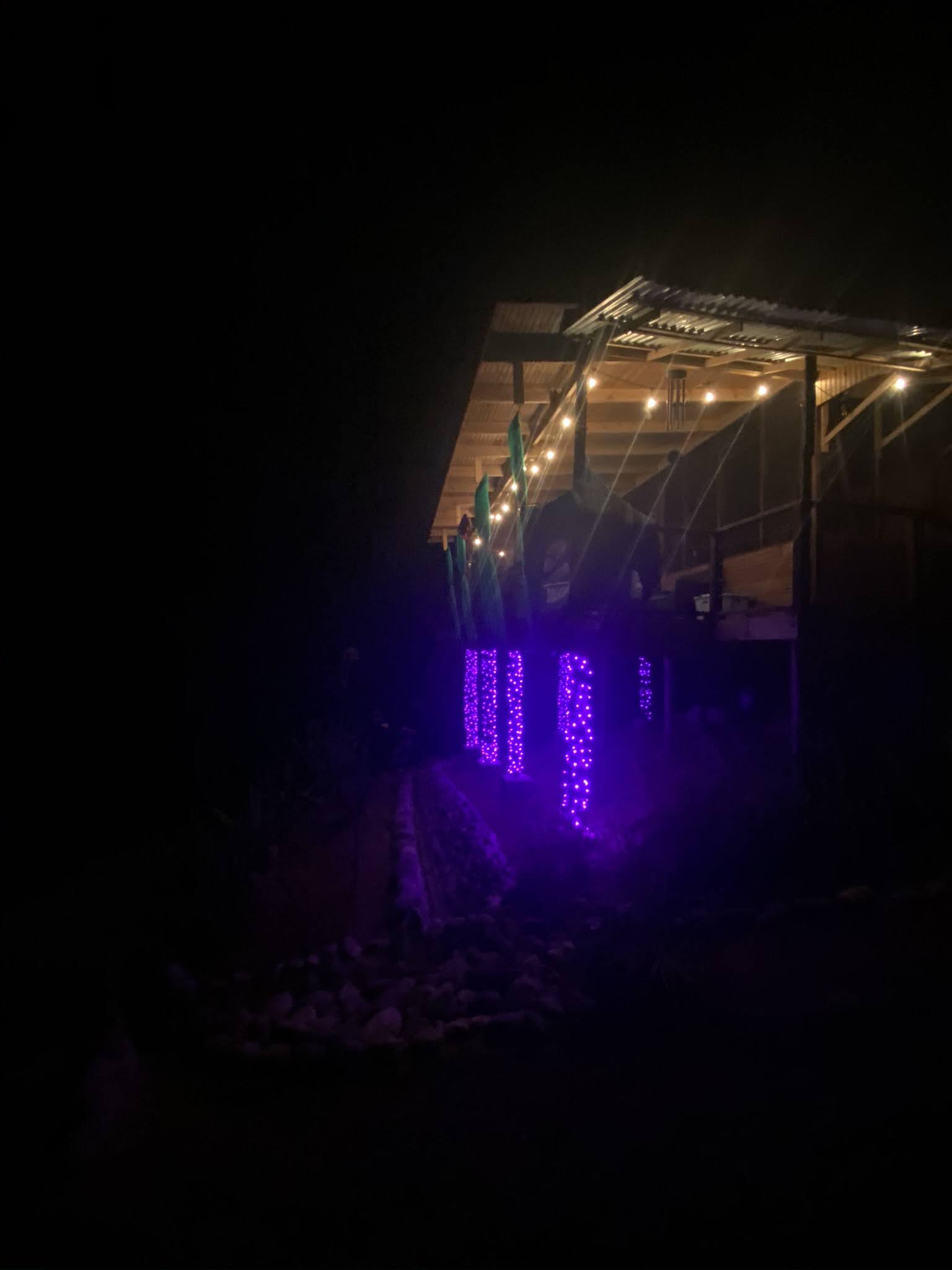 - LED lights were hung in the trees in the parking area behind the house and also wrapped around the support column posts of the house