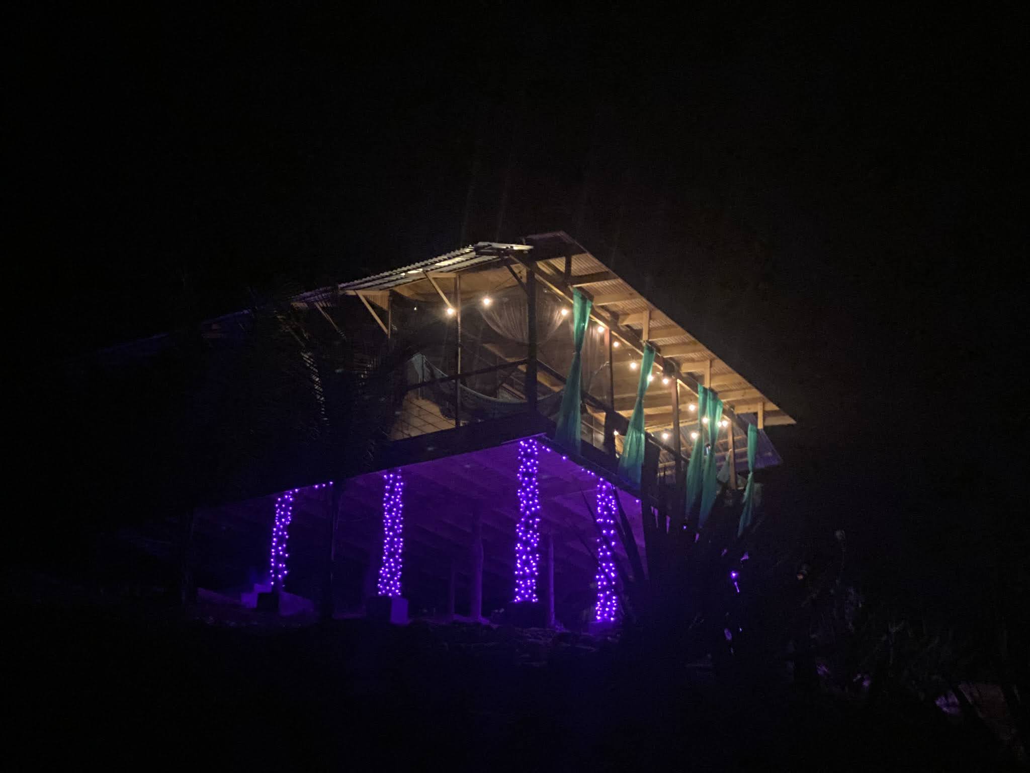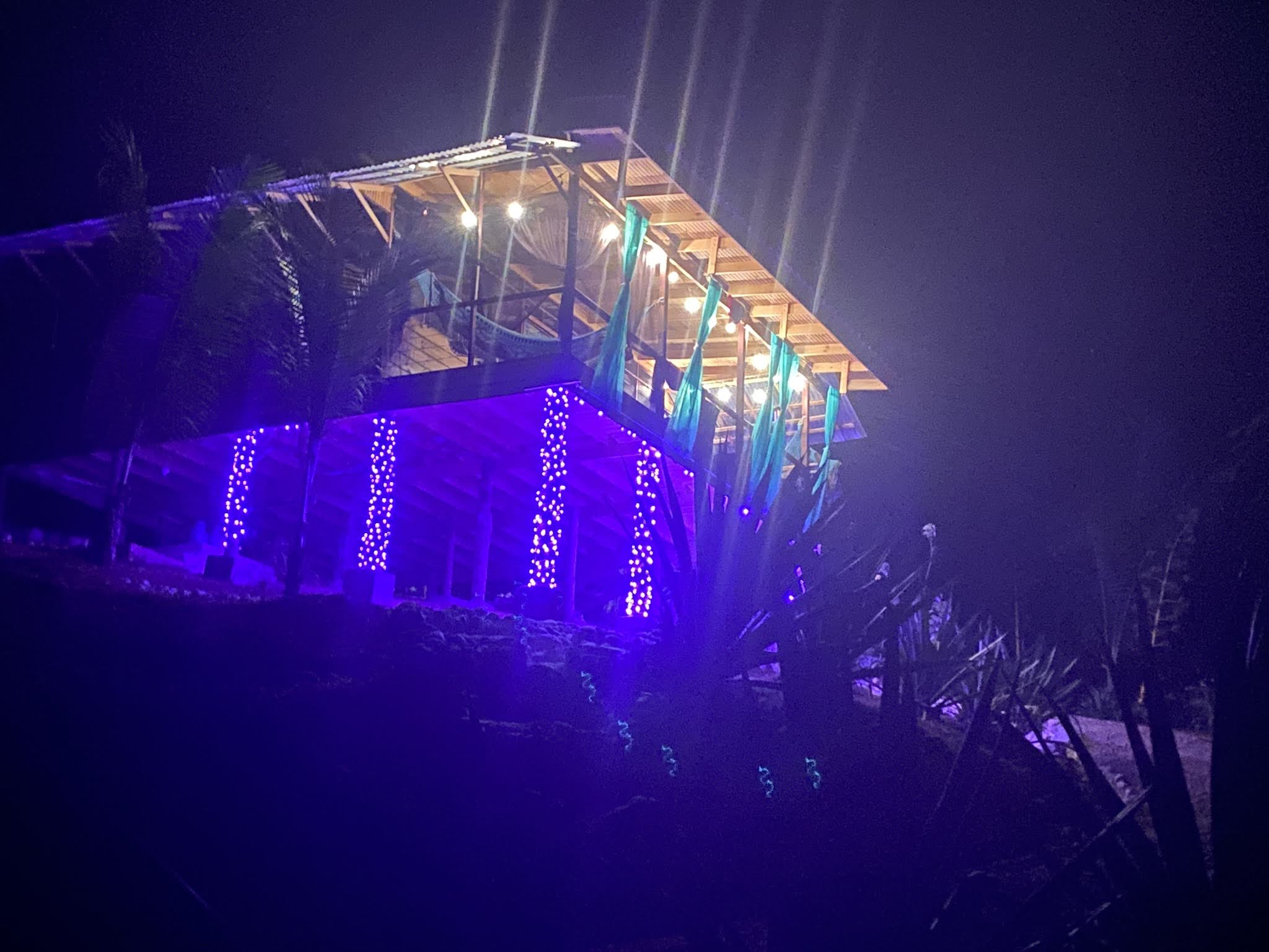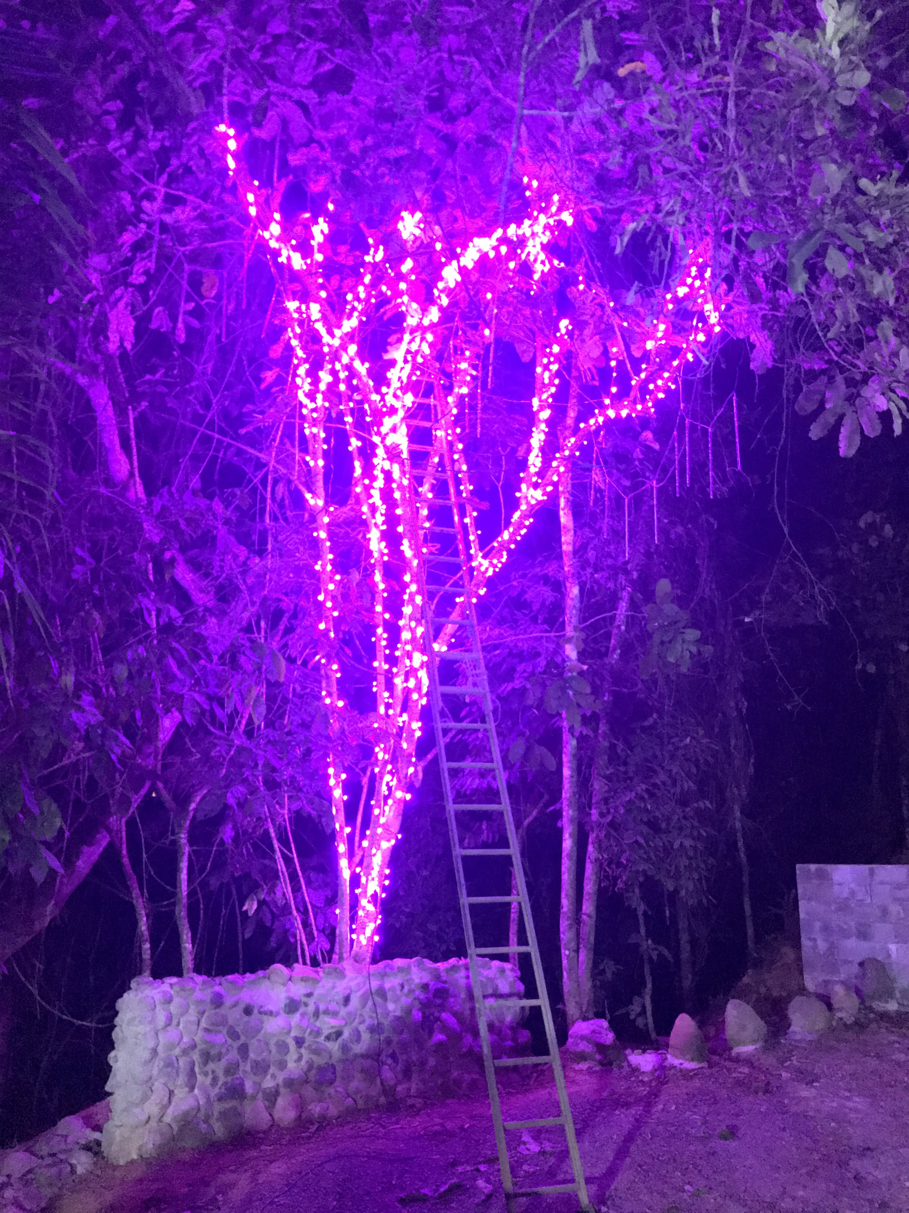- LED lights were hung in the trees in the parking area behind the house and also wrapped around the support column posts of the house