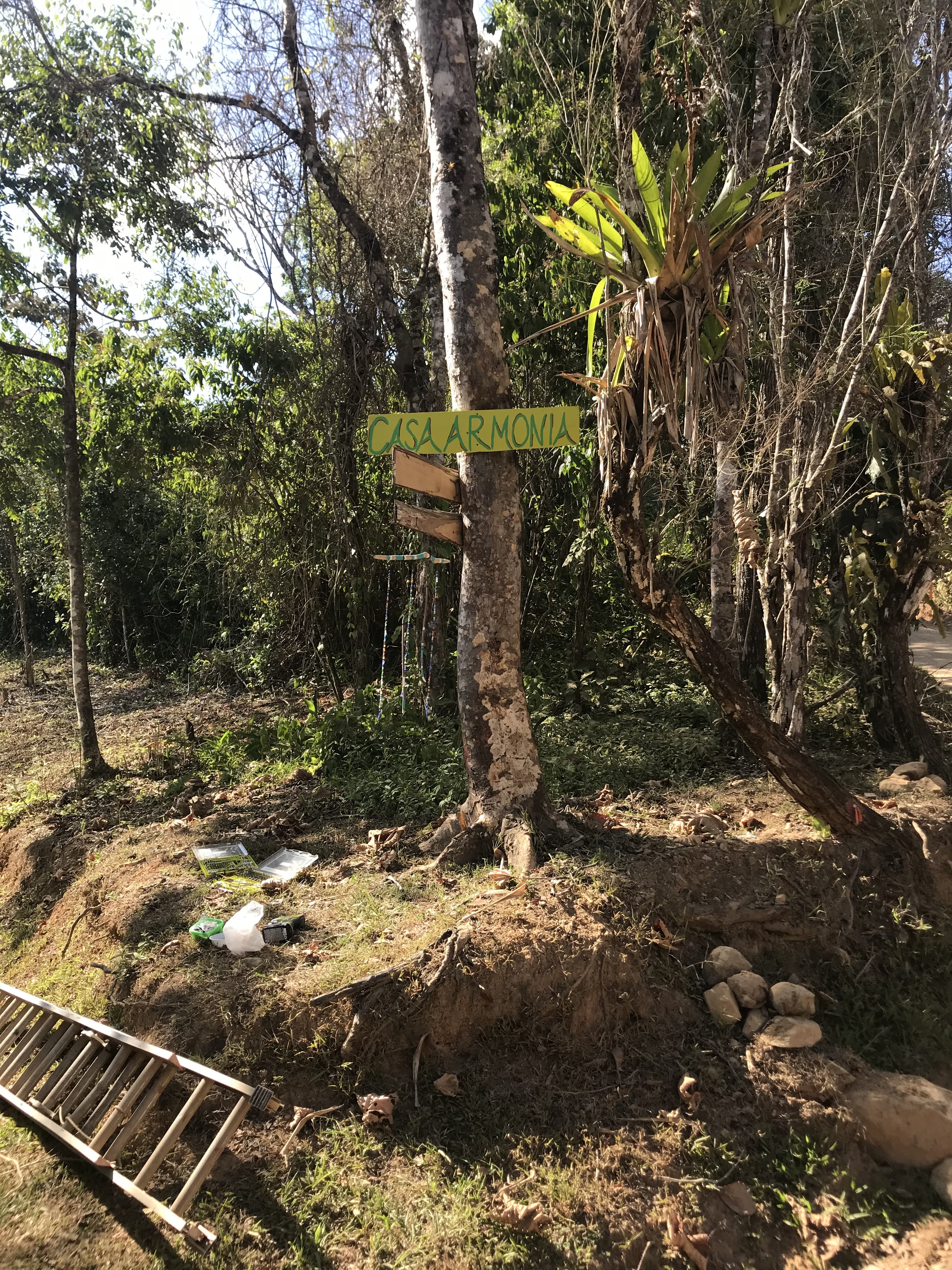 - A sign for the front of the property was manufactured from local wood and placed at the entrance of the driveway that connects to Lagunas Road