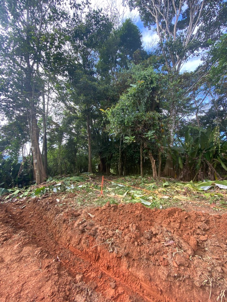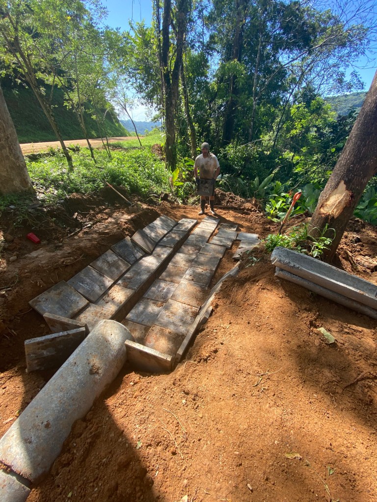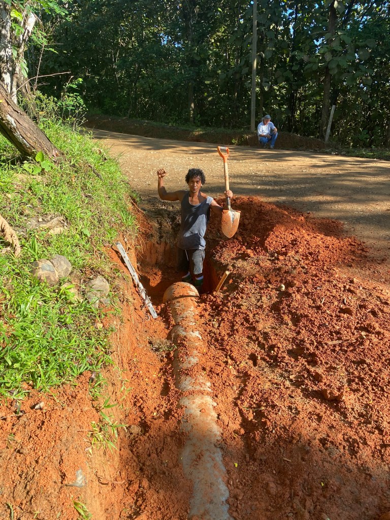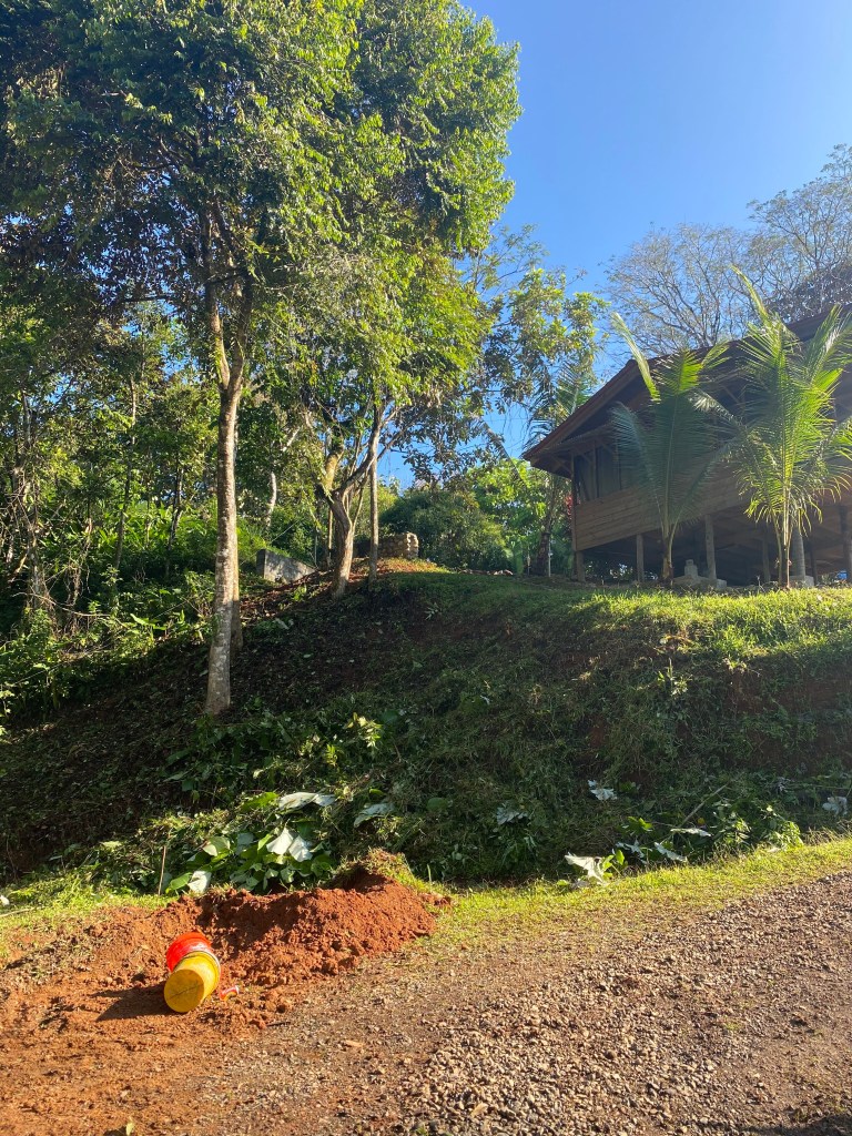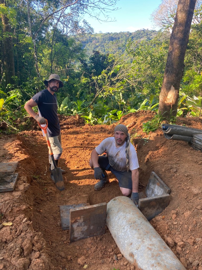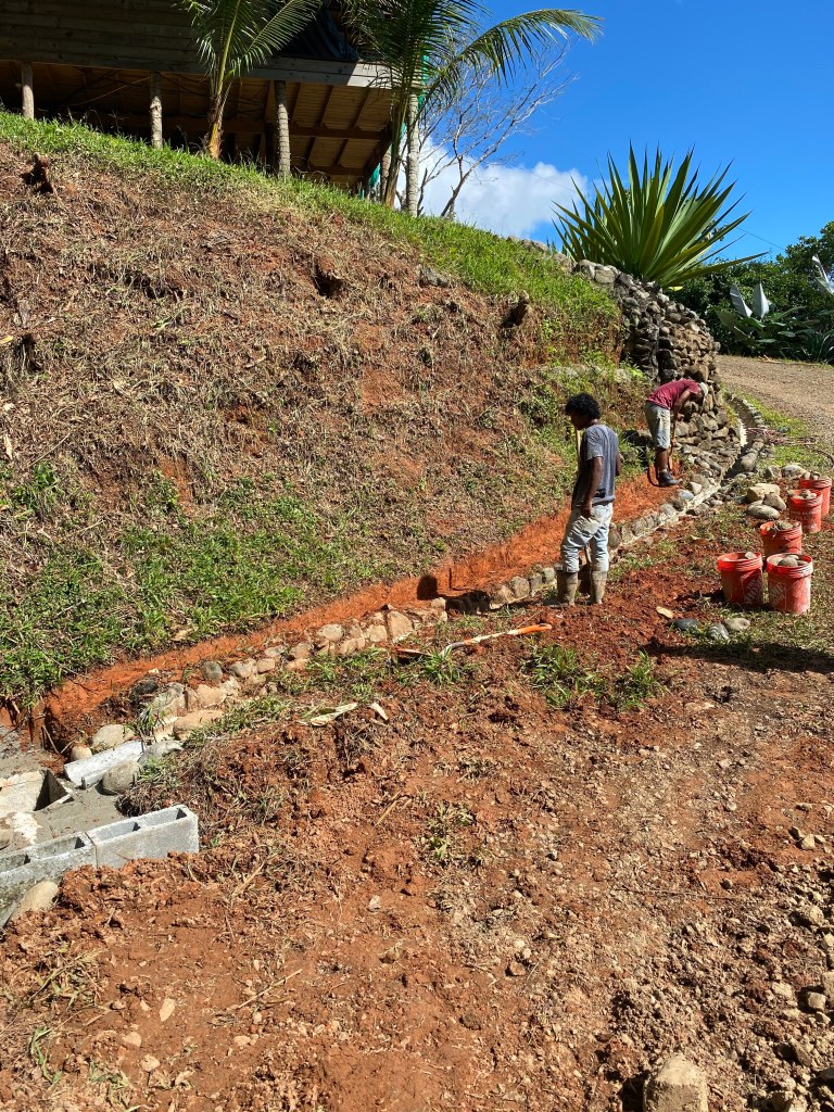 At the end of this trench line, a concrete connector box was constructed so that the alcanterias could round a corner and turn 90 degrees to keep pushing the water further down to lower levels of the property. Our original plan was to continue to move the water toward the jungle and let the water just flow naturally. When this plan was brought to the attention of our neighbor, we had to make a significant adjustment. Our original plan, as logical and cost effective as it was, was deemed unacceptable to our neighbor, as the assumption was that the rainwater coming from our property would contaminate the water from a natural spring that is very close. This is not the case, as there is no effluent associated with this drainage coming from our land, but the situation was not worth fighting about and jeopardizing a relationship with our immediate neighbor and colleague, therefore the line of alcanterias must be extended for a significant distance beyond our original plans. In January of 2021, a total of sixty-two (62) 12-inch alcanterias were installed. As of this writing, it is estimated that 30 additional alcanterias are required to complete this section of drainage. This is a significant cost for additional materials, labor, and backhoe machine rental, but that is how life is sometimes.