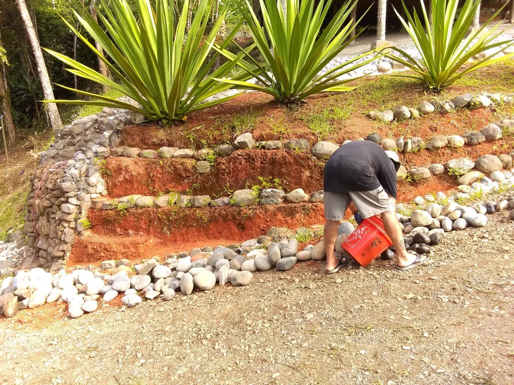 During this trip, some really cool items were addressed that had been lingering. In the back of the house, there is remnant row of trees that were not been hacked down during the house construction process. Some of the trees are nice and have long term potential for value-added beauty to the property. But as with everything in the jungle, it is a survival of the fittest competition of plant life to climb high and reach the sunlight. Along with that, there are the ever-present vines that seem intent on tangling things up and sometimes literally pulling trees down. Within this messy assemblage of a tree stand of various competing species and vines, the electric line that comes to the house is mounted within this nest-like assemblage of biomass. This is just problematic and obviously was not the best idea when the electric was installed. Over the course of various days, typically while drinking beers and Cuba libres, the three of us (Brandon, Pete, and myself) cut trees, numerous branches, vines… pulled things down and dragged the detritus away. This turned out to be a lot of stuff removed. The effect was phenomenal, for the clean up removed so many of the trees and vines that were just suffocating and killing each other and opened everything to sunlight. This is one of those side projects that brings a lot of joy and relief. The remaining trees are now free from the burden of their immediate competitors and those destructive vines. Additionally, the electric line that attaches within this tree grouping can now be more easily reached and this poorly thought out Tico-rig will be corrected in the very near future. We really owe it to our colleague and friend Brandon who was able to climb high into the tree stand and reach things that looked impossible to do until he did it.