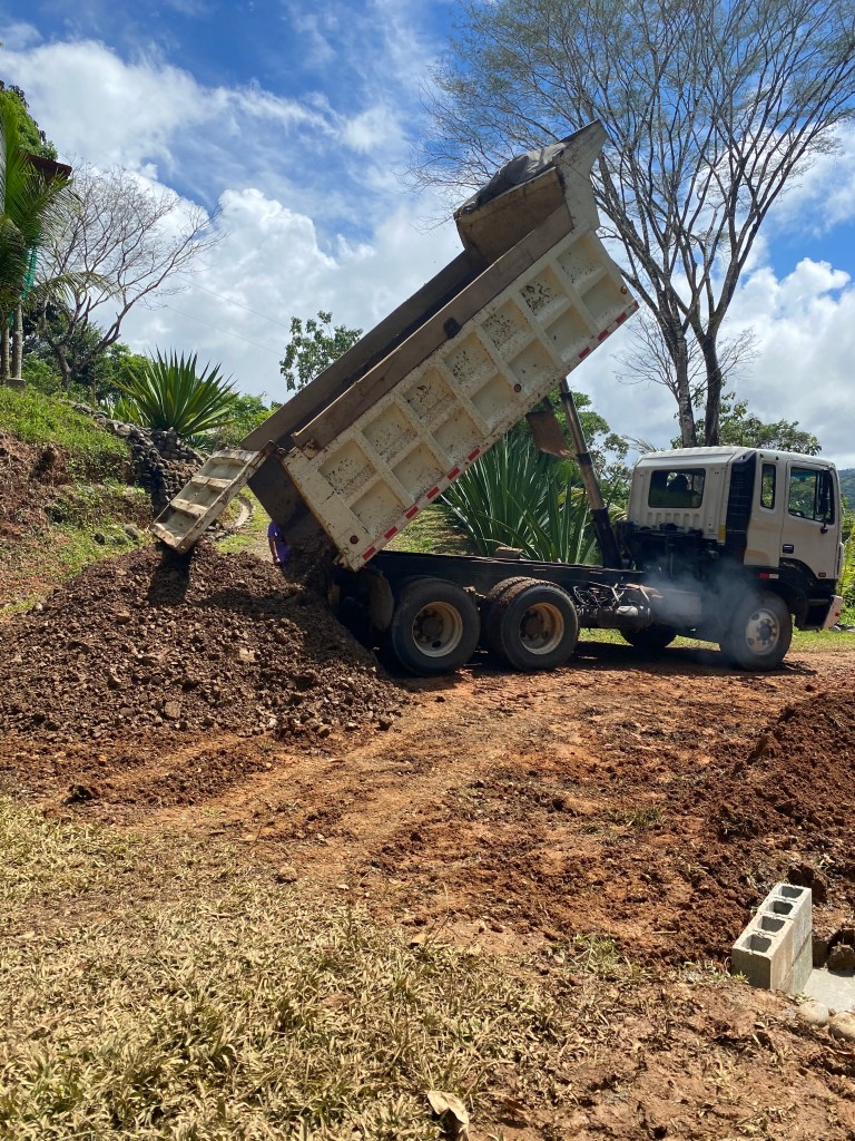 After the alcanterias were reburied and covered with 4 inches of concrete, another truckload of lastre (12 cubic meters) was used to cover this area and reconnect the driveway with this part of the property that could not be driven over for many years. This has truly been a welcome improvement, as parking has expanded, and large trucks now have sufficient room for maneuvering in and out during routine drop offs of materials.