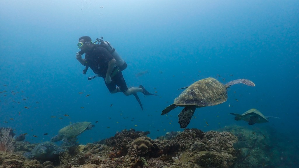 After the first dive ends, there will be a break for an hour duration or so. This is a good time to just relax a bit on the boat or to swim around and play in the water.
