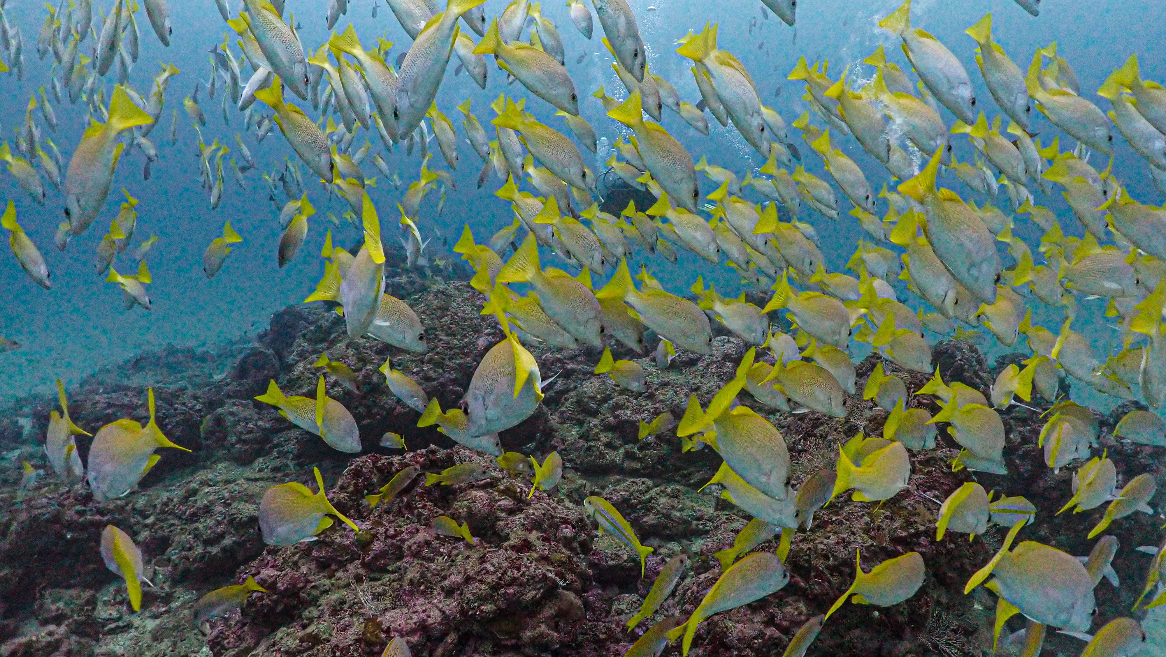 From here the first dive will begin. The scuba divers will be separated from the snorkelers who will go on their own adventure. Our overall assessment is that the water around the island is generally calm and the visibility is good to great. The water itself is typically always clear and has a low sediment content, but visibility is also dependent upon sunlight, and some days in Costa Rica are heavily overcast with cloudy skies. This will impact how much light penetrates from the surface to the lower depths.